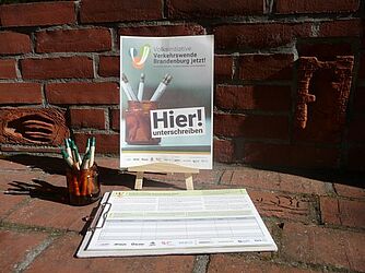 Wir schicken dir gerne Unterschriftenlisten, Aufkleber und Informationsmaterial. Schick uns einfach eine Nachricht an: info@verkehrswende-brandenburg.de oder ruf an unter: 0331/201 55 60.