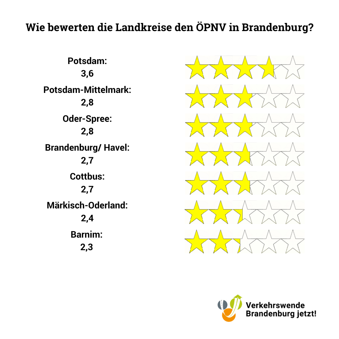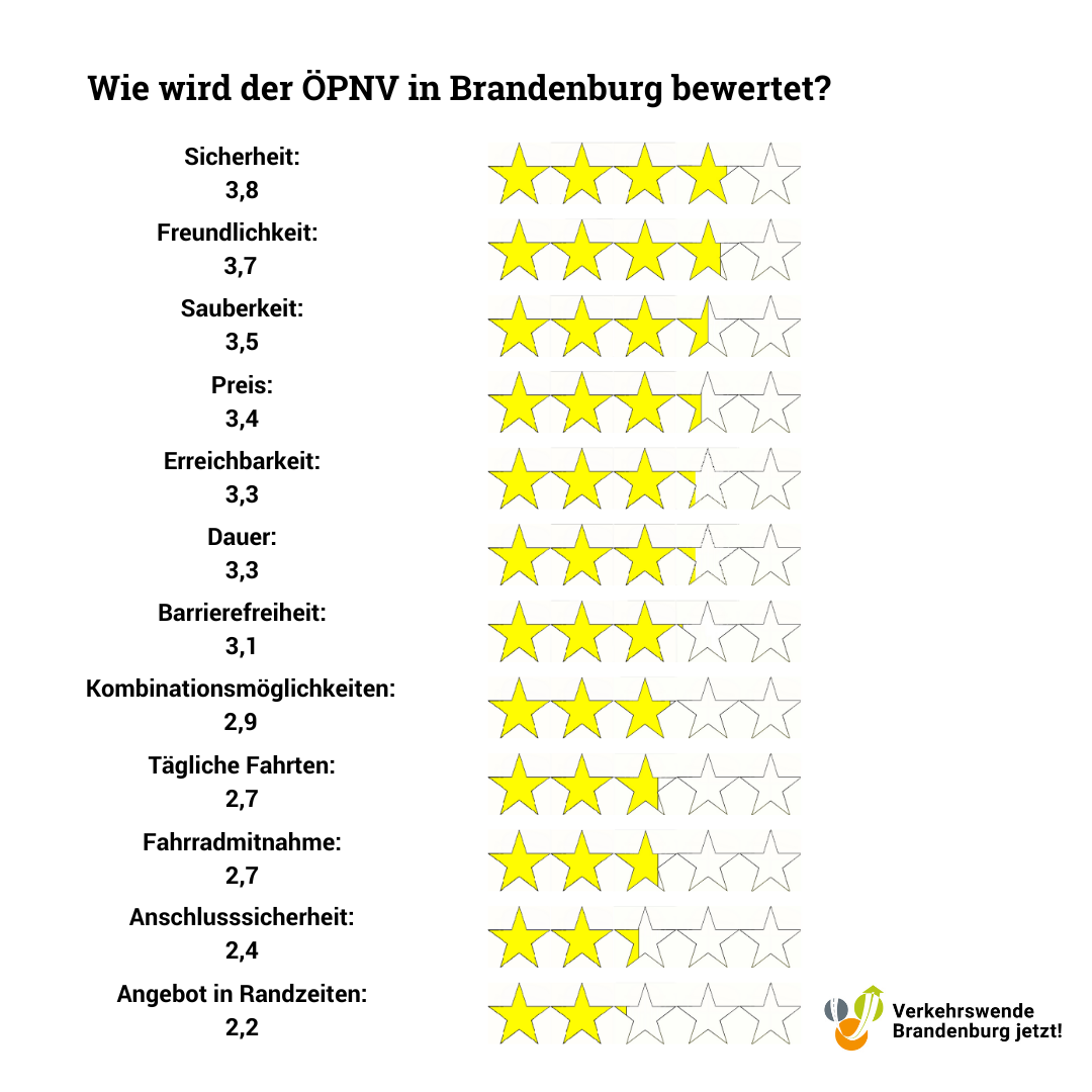 716 Personen aus ganz Brandenburg beteiligten sich am ÖPNV-Check und bewerteten den Nahverkehr vor ihrer Haustür – Das Ergebnis fällt differenziert aus