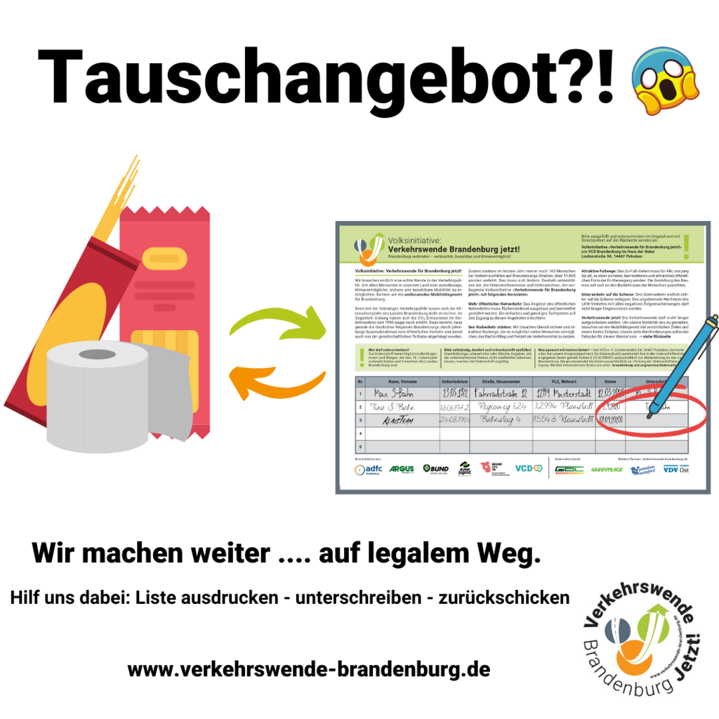 #VerkehrswendeBrandenburg @verkehrswendeB - verschickt unsere Sharepics an Freund und Bekannte mit der Bitte zu unterschreiben.Eine kleine Auswahl an Formaten findet ihr unten